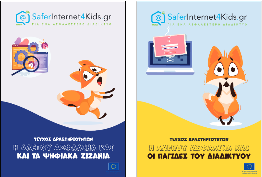 Η αλεπού Ασφαλίνα καθοδηγεί τα παιδιά μέσα από δύο νέα τεύχη δραστηριοτήτων. Με παιχνίδι και δημιουργικότητα γνωρίζουν τους «ιούς» και την ψηφιακή υγιεινή των συσκευών, ενώ μαθαίνουν να εντοπίζουν και να αποφεύγουν απόπειρες phishing και διαδικτυακές απάτες.
